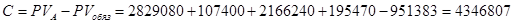 Для получения окончательной рыночной стоимости АЗС №443 необходимо к сумме чистой текущей стоимости денежных потоков с 01.01.2006г. по 01.01.2009г. прибавить величину собственного капитала предприятия. Сумма средств предприятия по разделу «Капитал и резервы» на 01.01.2006г. составила 2 821 300 рублей. Следовательно, рыночная стоимость объекта составляет:
