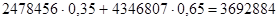 2 821 300 + 2 833 024 = 5 654 324 рублей.