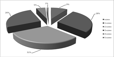 - Основная часть в структуре предложения жилой недвижимости на вторичном рынке принадлежит одно- двух- и трехкомнатным квартирам, что в принципе и не удивительно, так как именно данный сектор рынка наиболее востребован.