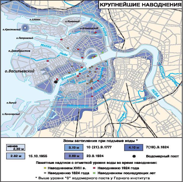 Рис. 1.1. Схема крупнейших наводнений в СПБ