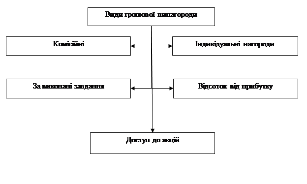 Широке поширення в останні роки в американських корпораціях отримала система «Pay for Performance» - (PFP), яка передбачає виплату винагороди за працю найманим працівникам як за індивідуальним принципом, так із за груповим. Види даних грошових виплат та винагороди представлені на рис.3[1].