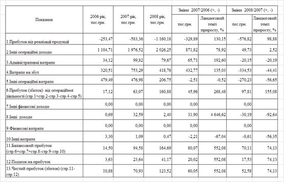 Таблиця Б.3. Результати діяльності за 2008 рік