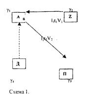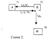 Разрабатываются три схемы возможного размещения производства. Для этого на картосхеме, принятой за основу, фиксируются: возможный источник сырья (А), поставщик электроэнергии (Z) и потребитель готовой продукции (П). Для всех обозначенных пунктов определяются поправочные коэффициенты к капитальным вложениям соответственно уьУ2,Уз, учитывающие влияние среды на рассматриваемое производство.