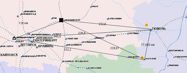 конечное звено (производство) размещается в районе поставщика энергии. Добыча и обогащение - у источника сырья. Сырье (в примере -железорудный концентрат) доставляются в пункт Артемовский; готовый продукт - к потребителю Тюмень и Исетское.