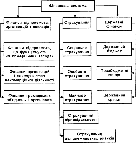 Фінанси функціонують через фінансову систему, яка включає сукупність різних форм організації фінансових відносин між державою і підприємствами, між підприємствами, організаціями і їх об'єднаннями, відносини держави з підприємствами та організацій з населенням. Найважливішими інструментами даної системи є податки, платежі до бюджету, платежі за державні кредити, рентні платежі, формування бюджетних і позабюджетних фондів і їх використання для задоволення суспільних потреб та ін. Важливим елементом фінансової системи є Міністерство фінансів України та його органи на місцях. Саме воно почало формувати й використовувати головні економічні регулятори і несе за це цілковиту відповідальність.
