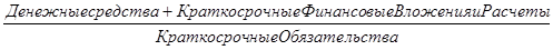 Для расчета этого коэффициента производится оценка статей «краткосрочные финансовые вложения» и «дебиторская задолженность» (платежи по которой ожидаются в течение 12 месяцев после отчетной даты). Указанные статьи уменьшаются на сумму финансовых вложений в неликвидные корпоративные бумаги и неплатежеспособные предприятия и сумму безнадежной дебиторской задолженности соответственно.