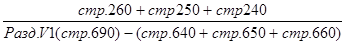 Коэффициент соотношения собственных и заемных средств К4 характеризует финансовую устойчивость предприятия и определяется как соотношение средств (итог раздела 1V баланса за вычетом убытков) ко всей сумме обязательств по привлеченным заемным средствам (итог разделов V и V1 баланса, за вычетом строк 640- «доходы будущих периодов », 650- «фонды потребления», 660- «резервы предстоящих расходов и платежей ») .