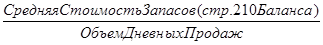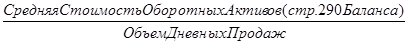 Оборачиваемость разных элементов оборотных активов и кредиторской задолженности рассчитывается в днях исходя из объема дневных продаж (однодневной выручки от реализации). Объем дневных продаж рассчитывается делением выручки от реализации на число дней в периоде (90,180, 270 и 360). Средние (за период) величины оборотных активов и кредиторской задолженности рассчитываются как половинные суммы величин на начальную и конечную даты периода и полных величин на промежуточные даты, деленные на число слагаемых , уменьшенное на 1.