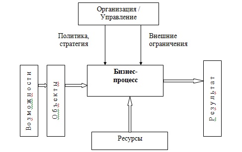 Наглядно бизнес-процесс можно представить как некую процедуру, организация и управление которой с привлечением необходимых ресурсов позволяет получить из исходного объекта определенный результат (рис. 2).