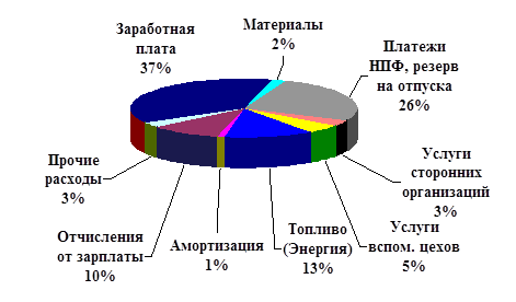 Структура косвенных затрат в себестоимости материалов.
