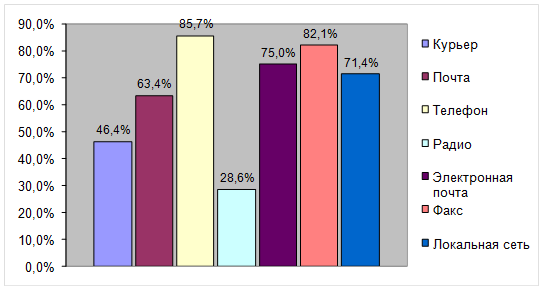 Передача информации о положении и деятельности фирмы на высший уровень управления и взаимный обмен информацией между всеми взаимосвязанными подразделениями фирмы осуществляется на базе современной электронно-вычислительной техники и других технических средств связи. В деятельности крупных фирм, в особенности ТНК, представляющих собой комплексы большого числа повседневно связанных и взаимодействующих предприятий, расположенных в разных странах, передача информации является непременным и первостепенным фактором нормального функционирования фирмы [3 c. 132].
