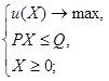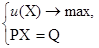 Эту задачу можно решить с помощью множителей Лагранжа. Составим функцию Лагранжа L(X, λ)=u(X) + λ(Q-PX), найдём частные производные и приравняем их к нулю: