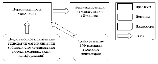 В ходе как общего, так и детального анализа ТМ-профиля каждый тезис анализа иллюстрируется схемой причинно-следственных взаимосвязей проблем и их источников (рис. 7.3).