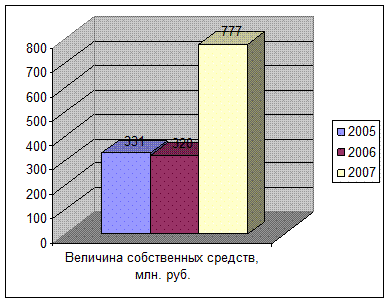 Величина собственного капитала Банка на 01.01.2008 года составила 777 млн. рублей, что в 2,5 раза превышает показатель на начало 2007 года (Рис. 3).