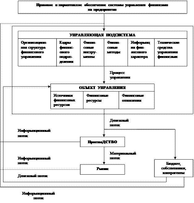 | Рисунок 1 - Структура и процесс функционирования системы управления финансами на предприятии