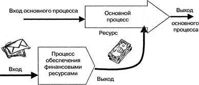 Пример 1.3 Счет на оплату является входом для финансовой службы. Выходом является оплаченный счет или копия платежного поручения. Для основного процесса бюджет, в рамках которого производится оплата счетов, является ресурсом (рис. 2).