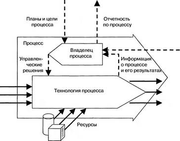 Процесс имеет входы и выходы. Для выполнения процесса используются ресурсы (персонал, оборудование, инфраструктура, среда и пр.). Управление процессом осуществляет владелец процесса. Все ресурсы, необходимые для выполнения процесса, находятся в его распоряжении. Таким образом, в рассматриваемом понимании процессного подхода к управлению наличие владельца процесса, обладающего ресурсами, является важнейшим необходимым условием.