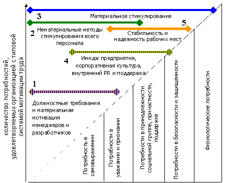 Некоторые потребности могут и должны удовлетворяться только материально, что-то – только морально, но подавляющая часть потребностей может быть удовлетворена только комбинацией моральных (в т.ч. организационных, т.е. заведомо заложенных в системе управления) и материальных факторов.