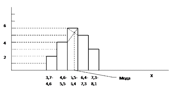 Для графического изображения интервальных вариационных рядов применяются гистограммы. Она строится так: на оси абсцисс откладываются равные отрезки, которые в принятом масштабе соответствуют величине интервалов вариационного ряда. На отрезках строят прямоугольники, площади которых пропорциональны частотам (или частностям) интервала.