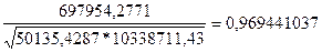 Квадрат коэффициента корреляции (коэффициент детерминации), равный 0,94, показывает сильную прямую связь между анализируемыми признаками (94% вариации активов обусловлены вариацией капитала).