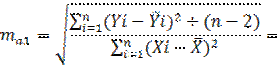 8. Проведем статистическую оценку надежности и точности расчета коэффициентов линейной регрессии и корреляции. Для этого проведем расчет средней случайной ошибки коэффициентов парной линейной регрессии и коэффициента корреляции.