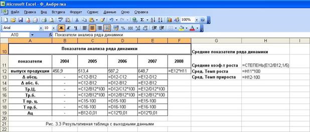 Рисунок 3.2"Формульный шаблон формирования таблицы с выходными данными"