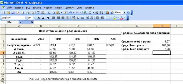 Статистический анализ динамики объема производства продукции выполнен с применением пакета прикладных программ обработки электронных таблиц MS Excel в среде Windows.
