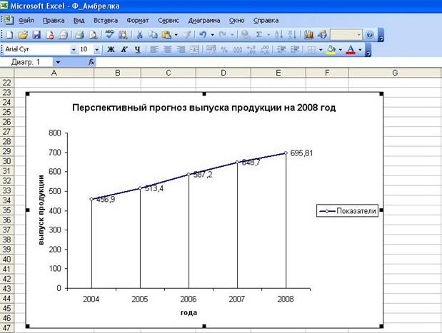 На рис. 3.4 представлено графическое изображение результатов расчета перспективного прогноза выпуска продукции на 2006г.
