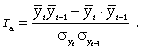 автокорреляция, под которой понимается зависимость между соседними членами динамического ряда. Автокорреляцию можно установить с помощью перемещения уровня на одну дату. Коэффициент автокорреляции вычисляется по формуле
