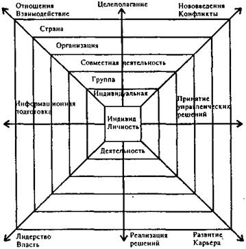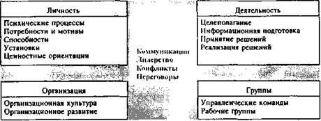 Выделяются три уровня рассмотрения проблем поведения: личностный, групповой, организационный. Поведение человека определяется его собственными свойствами, влиянием условий формирования индивидуальной деятельности, особенностями группы, в которую он включен, и условиями совместной деятельности, особенностями организации и страны, в которых он работает.