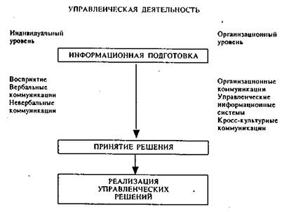 Управленческая деятельность складывается из информационной подготовки, принятия и реализации управленческих решений. Руководитель занимается планированием, организацией, контролем и выполняет функции лидера.