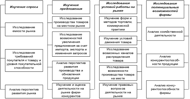 служит основой маркетинга и предполагает анализ всех условий, имеющих значение для успешной реализации товара (рис. 1.1). Программа комплексного исследования зависит от особенностей товара, характера деятельности предприятия, масштабов производства экспортных товаров и других факторов.[1]