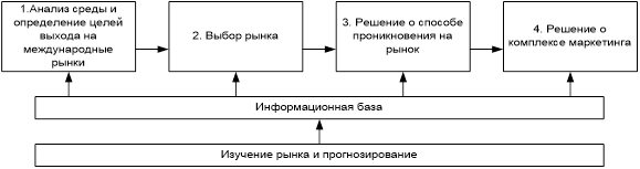 В международном маркетинге на всех этапах разработки стратегии выхода предприятия на внешние рынки и ее реализации особую важность приобретает информация о мировых рынках и рыночной конъюнктуре; методах и формах международного сотрудничества; собственном потенциале предприятия; унифицированных обычаях, правилах и нормах международного сотрудничества.Сбор информации в рамках реализации первого этапа маркетинга