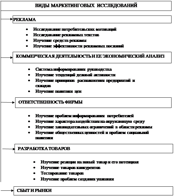Рисунок 1 - Виды маркетинговых исследований, соответствующих основным направлениям деятельности корпораций