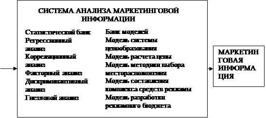Третья― система маркетинговых исследований, призванная обеспечить сбор информации, актуальной с точки зрения стоящей перед фирмой конкретной маркетинговой проблемы. Отделами маркетинговых исследований располагают три четверти всех крупных компаний. Четвертая― система анализа маркетинговой информации, использующая современные методики статистической обработки данных и модели, облегчающие деятелям рынка процесс принятия оптимальных маркетинговых решений. Постоянно растет число компаний, имеющих статистические банки и банки моделей.