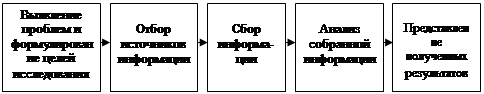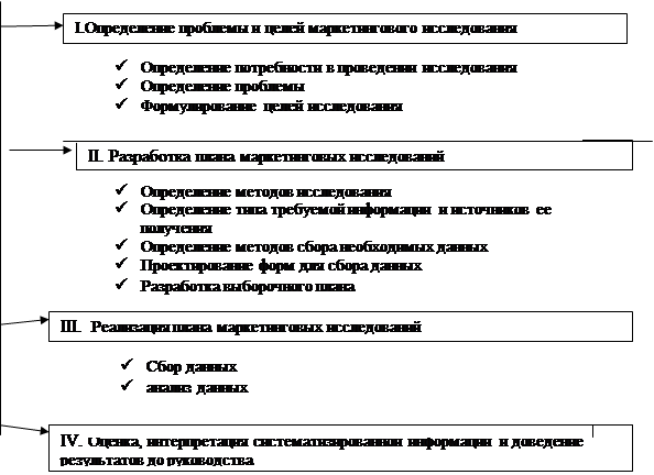 - выделение этапов (стадий) процесса маркетинговых исследований,