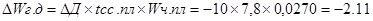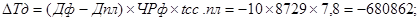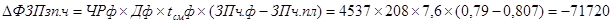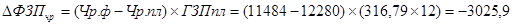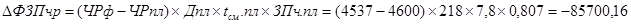 ГЗПд = (Дф –Дпл) х tсм.пл х ЧЗПпл=(208-218)*7,8*2,235=-174,33 грн;