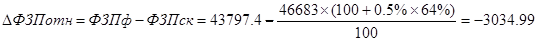 За счет уменьшения фактической среднесписочной численности от плановой на 796 человек имеем годовое отклонение в фонде оплаты труда на 3025,9 тыс.руб.