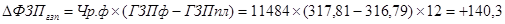 ГЗПчзп = Дф х tсм.ф х (ЧЗПф - ЧЗПпл )=208*7,6*(2,412-2,235)=279,80 грн;