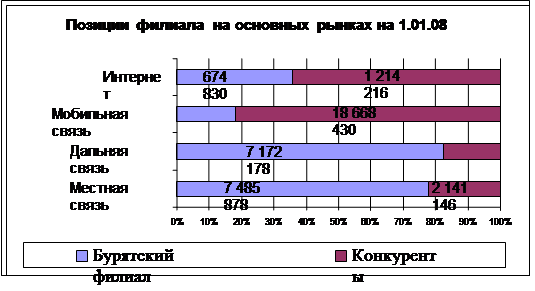 – За 2007 год филиал оказал потребителям телекоммуникационные услуги на сумму 789,5 млн. руб., темпы роста по отношению к 2005 года составили 96,5%. Основными потребителями услуг связи являются население и хозрасчетные организации, в отчетном периоде на их долю пришлось соответственно 62,9% и 37,1% от общего объема реализации. На долю организаций, финансируемых из бюджетов различных уровней, приходилось 14,7 оказанных услуг связи.
