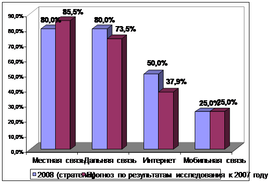 Данные таблицы 3.6. показывают, что доходы от услуг документальной связи увеличатся на 7910 тыс. руб. в 2010 году по сравнению с 2007 годом или на 35,3%, по междугородной связи на 227617 тыс. руб. или 102,3%.