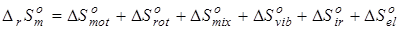 .– соответственно, энтропийные вклады, обусловленные вращением молекулы как целого, смешением конформеров, колебательным движением и заторможенным вращением групп в молекуле, рассчитываемые как разность соответствующих энтропийных составляющих конечных (II) и исходных веществ (I).