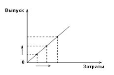 При этом рост выпуска продукции прямо пропорционален количественному увеличению факторов производства. Имеет место прямая пропорциональная зависимость между объемом выпуска и затратами на производство (рис. 1).