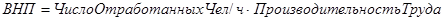 Производительность труда является важнейшим показателем экономического роста, т.е. показателем, обеспечивающим рост реального продукта и дохода. Рост реального продукта приводит к увеличению валового национального продукта. Так реальный ВНП определяется по формуле (1.2) как трудозатраты умноженные на производительность труда.