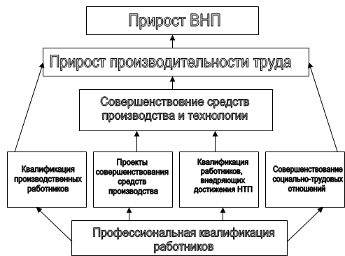 Рисунок 1.2 - Влияние квалификации на производительность труда и увеличение ВНП.