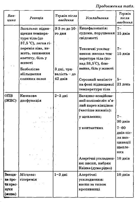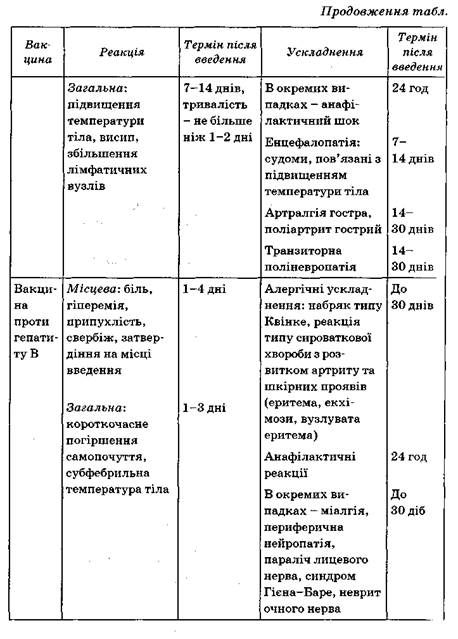 Продовження введення вакцин, які застосовують багаторазово, протипоказане дітям, в яких на попередню дозу була тяжка реакція або ускладнення. Оскільки їх виникнення найчастіше пов'язане з уведенням кашлюкового компонента, наступну бустер-дозу проводять АДС анатоксином; живі вакцини (ОПВ, ЖКВ, ЖПВ) для таких дітей не протипоказані. У багатьох випадках у відповідь на введення першої дози вакцини можуть розвинутись алергічні ускладнення. Подальше щеплення таких дітей необхідно проводити в стаціонарі, за 2—3 дні їм призначають антигістамінні та кортикостероїдні препарати на фоні гіпоалергенної дієти.