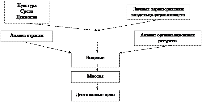 Часто руководители фирм считают, что их основная миссия - получение прибыли. Действительно, удовлетворяя какую-то внутреннюю потребность, фирма в конечном счете сможет выжить. Но, чтобы заработать прибыль, фирме необходимо следить за средой своей деятельности, учитывая при этом ценностные подходы к понятию рынка. Миссия представляет чрезвычайное значение для организации, нельзя забывать о ценностях и целях высшего руководства. Ценности, формируемые нашим опытом, направляют или ориентируют руководителей, когда они сталкиваются с необходимостью принятия критических решений.