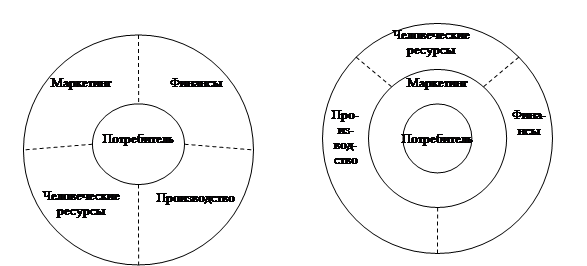 Так вот, для решения проблем, на предприятиях производственная ориентация организационных культур должна быть заменена на маркетинговую.