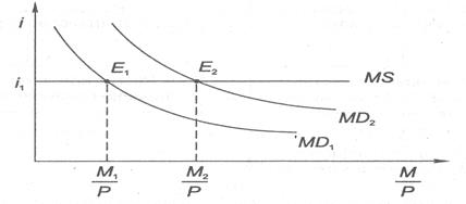 политика). Он стремится удержать ее, изменяя предложение денег. Такому положению будет соответствовать горизонтальная кривая предложения денег MS