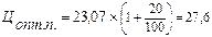 де – оптова ціна підприємства, грн.; – повна собівартість виробу, грн.; – нормативний рівень рентабельності, 20%; – податок на додану вартість, 20%.
